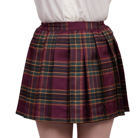 コーディネートしやすい人気のえんじとグリーンを基調としたプリーツスカート。