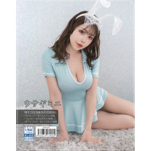 ブルーの可憐な印象と、やや短めのミニスカート丈でセクシーさもアピール。長いウサギの耳とワンピースが可愛らしさを演出します。伸縮のある生地はタイト過ぎず、着やすさにも拘りました。ヒップラインが見えてしまいそうな危うい着丈感はドキドキ感を味わえます。