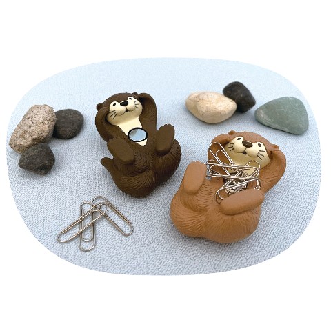 こちらはジャグリングクリップホルダーになります、仰向けになって小石をコロコロするカワウソの仕草を再現デスクで寝転がってクリップと戯れる♪デスク周りが癒しで包まれますよ(^^♪