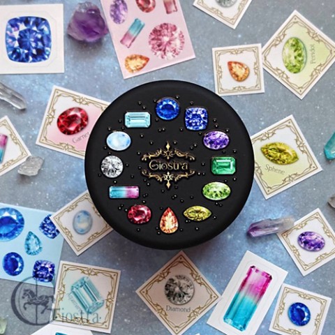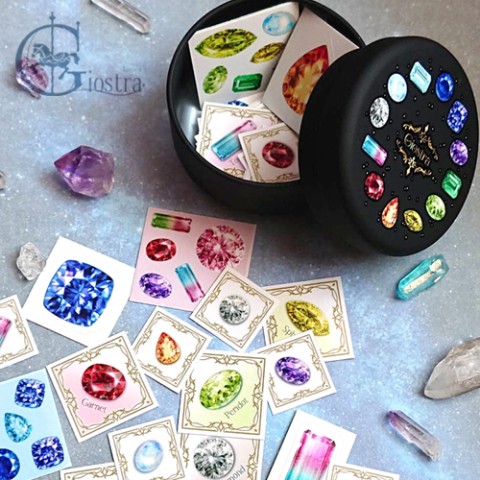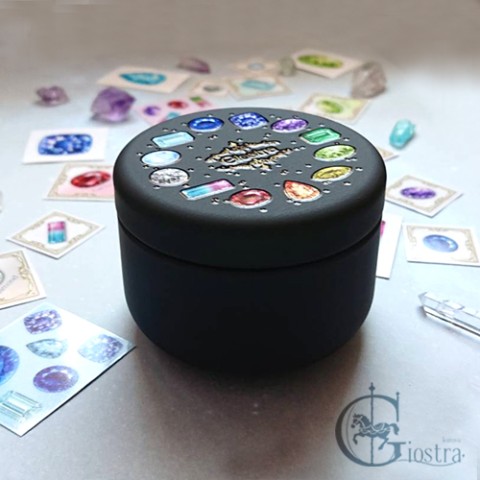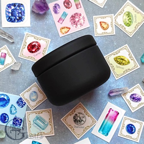 宝石イラストのフレークシールが入ったミニサイズの丸缶です。