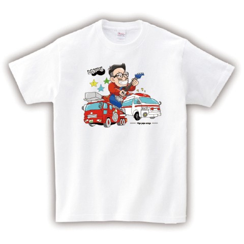 【ヒゲパパ】Tシャツ はたらくくるま ホワイト(Mサイズ)