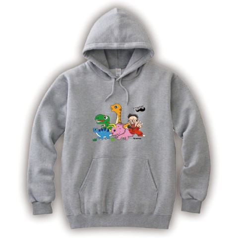 【ヒゲパパ】パーカー 杢グレー きょうりゅう(XLサイズ)