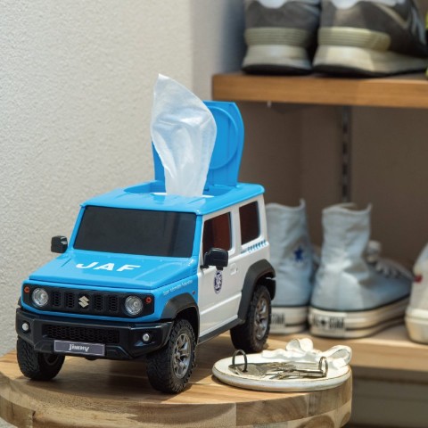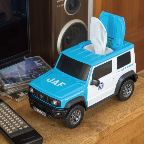 世界初!スズキの人気自動車「ジムニ- シエラ」型のウェットティッシュケ-スにJAFバ-ジョンが登場。
