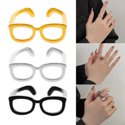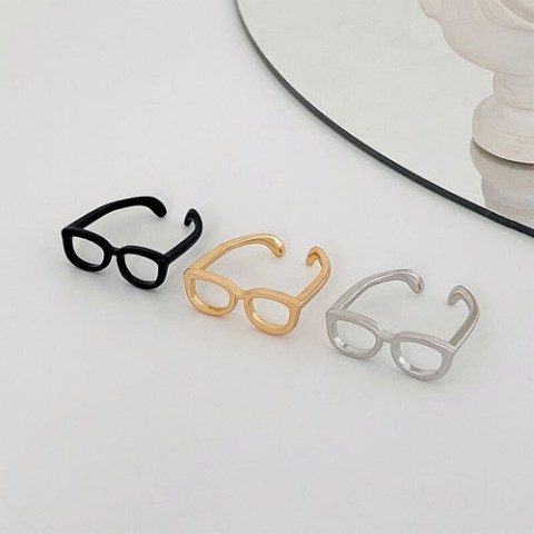 【#kawaiiiii!】ウェリントン型眼鏡リング (シルバー)