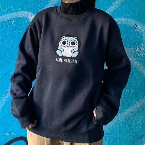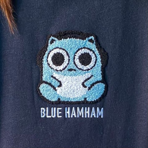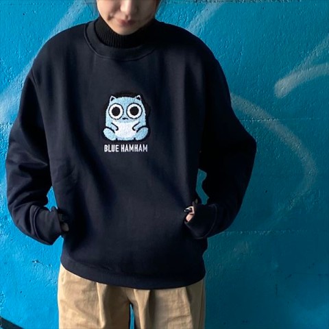 ブルーハムハムの裏起毛素材の新作トレーナー。カラーは2色。フロントにサガラ刺?が人気アイテムです。