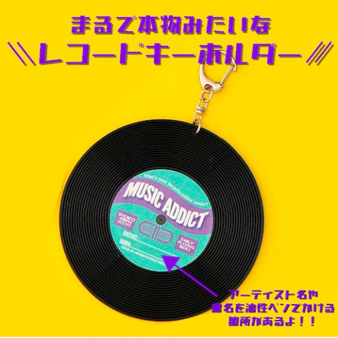 ビビビビット!!オリジナルデザインのレコードキーホルダーです!まるで本物のレコードみたいに溝もはいっています。デザインの真ん中あたりには曲名やアーティスト名を油性ペンで記入できる箇所がございます。是非とも自分の推しアーティストを記入して、推しアピとしても使用してください。サイズも10とキーホルダーとしては大きめなので、カバンにつけるだけでインパクト抜群です。
