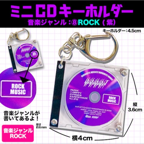 【ビビビビット!!】\音楽好きに大人気/ミニCDキーホルダー 【音楽ジャンル:ROCK 色:紫】