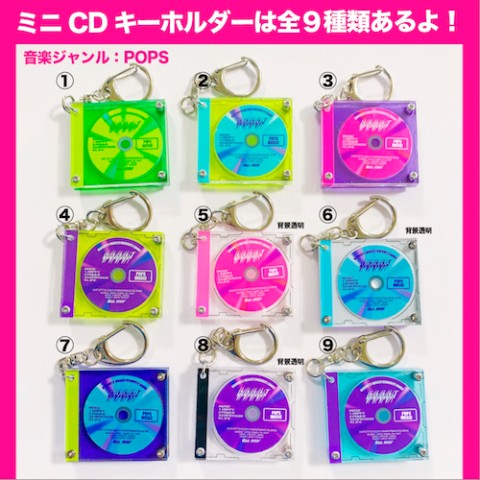 オリジナルのアクリルパーツを組み合わせて作成した、ミニCDキーホルダー。真ん中のCDをよくみると、音楽ジャンル【POPS MUSIC】と記載されています。音楽ジャンルと、色の組み合わせで是非ともお気に入りを見つけてみてください。推しアーティストの色で選ぶのもお勧めです。カラーバリエーションは全部で9種類です。