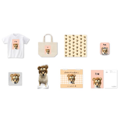【ポメラニアンのポメくん(福袋)】 竹コース:・TシャツL・トートバック(Sナチュラル)・ハンドタオル・スマホリング(SPR01)・キラキラシール(5cm)・ピクチャースタンド(12cm)・日めくりカレンダー・ポストカード