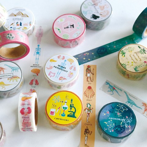 それぞれの学問のモチーフや説明を詰め込んだ、図鑑のようなマスキングテープです。