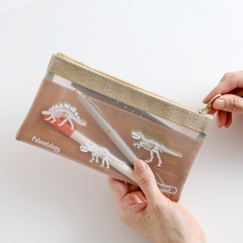 見せたいものと見せたくないものを分けて持ち歩ける3重構造のメッシュペンポーチ。前後のデザインの重なりも楽しめる、学べるペンポーチです。
