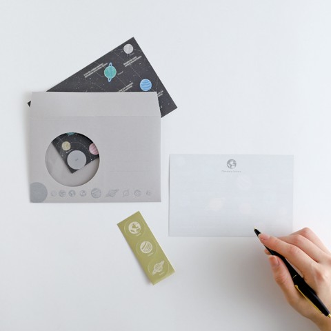 便箋を封筒に入れると図鑑のような絵柄がのぞく、学べるレターセットです。封シールにもそれぞれの絵柄入り。便箋6枚、封筒3枚、封シール3枚入