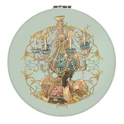 鉄塊描き下ろしイラストのゴージャスなコンパクトミラー。自身の顔を映す異形頭、どれがお好みですか?