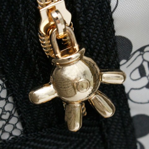 内装にはたくさんのミッキーが。ファスナートップはミッキーのグローブ型になっています。フタ側の仕切りはファスナーで閉じられるので、開閉の際に荷物がこぼれる心配がありません。キャスターにもミッキーがデザインされており、細部までキャラクターがいっぱい。TSAロック仕様なのでアメリカ方面への移動も安心。
