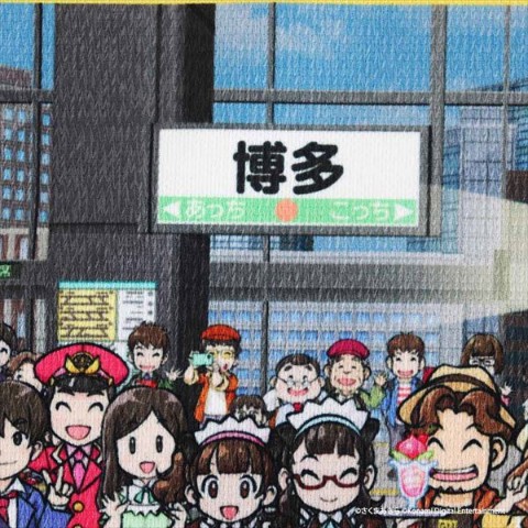 【桃太郎電鉄】スマホ・メガネ拭き ハンカチ 到着駅「博多」