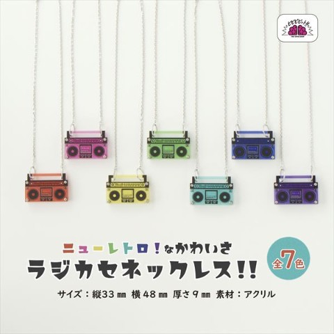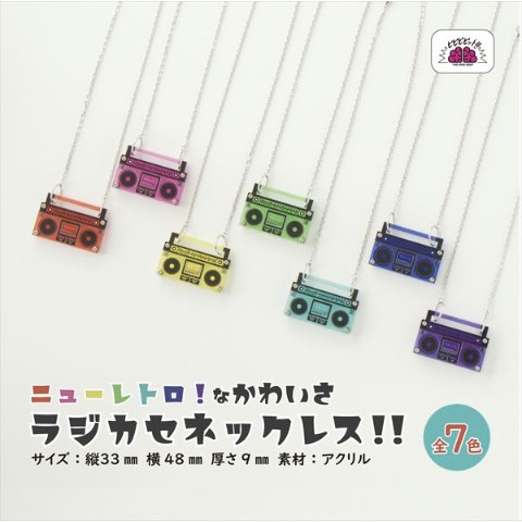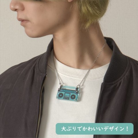 レトロなラジカセをアクリルで作った、クリアでカワイイ!ニューレトロなラジカセネックレス。