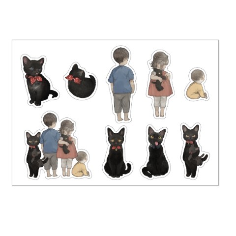 今回のコラボのねこ助さん描きおろし絵柄、全種がセットになった贅沢なステッカー!