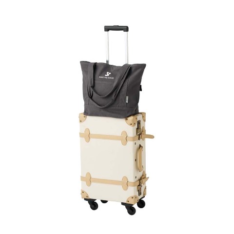 スーツケースのハンドルに固定できるキャリーオン機能搭載のキャンバストートです。