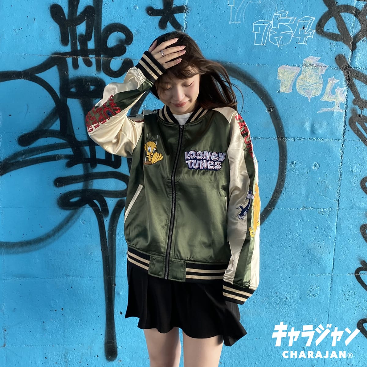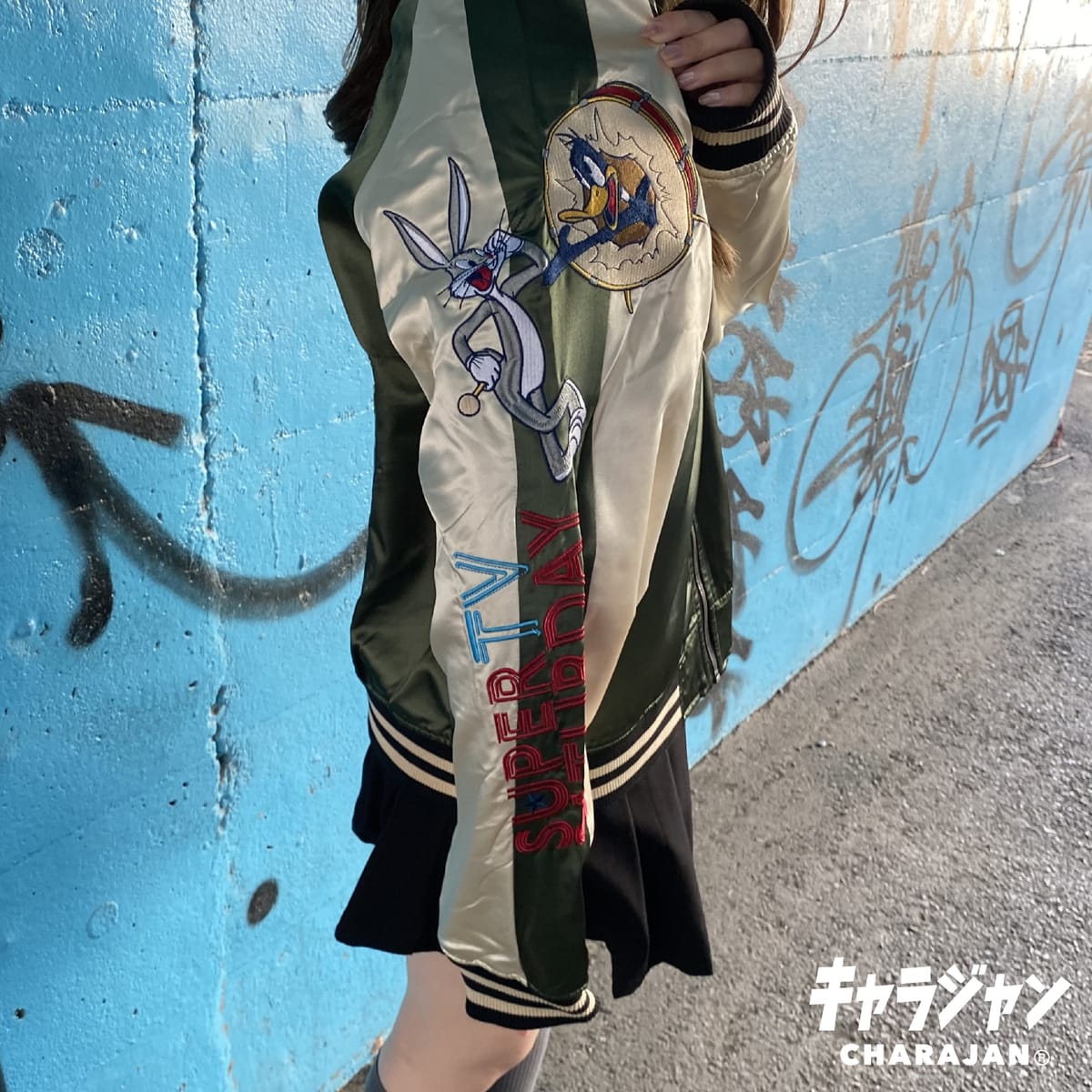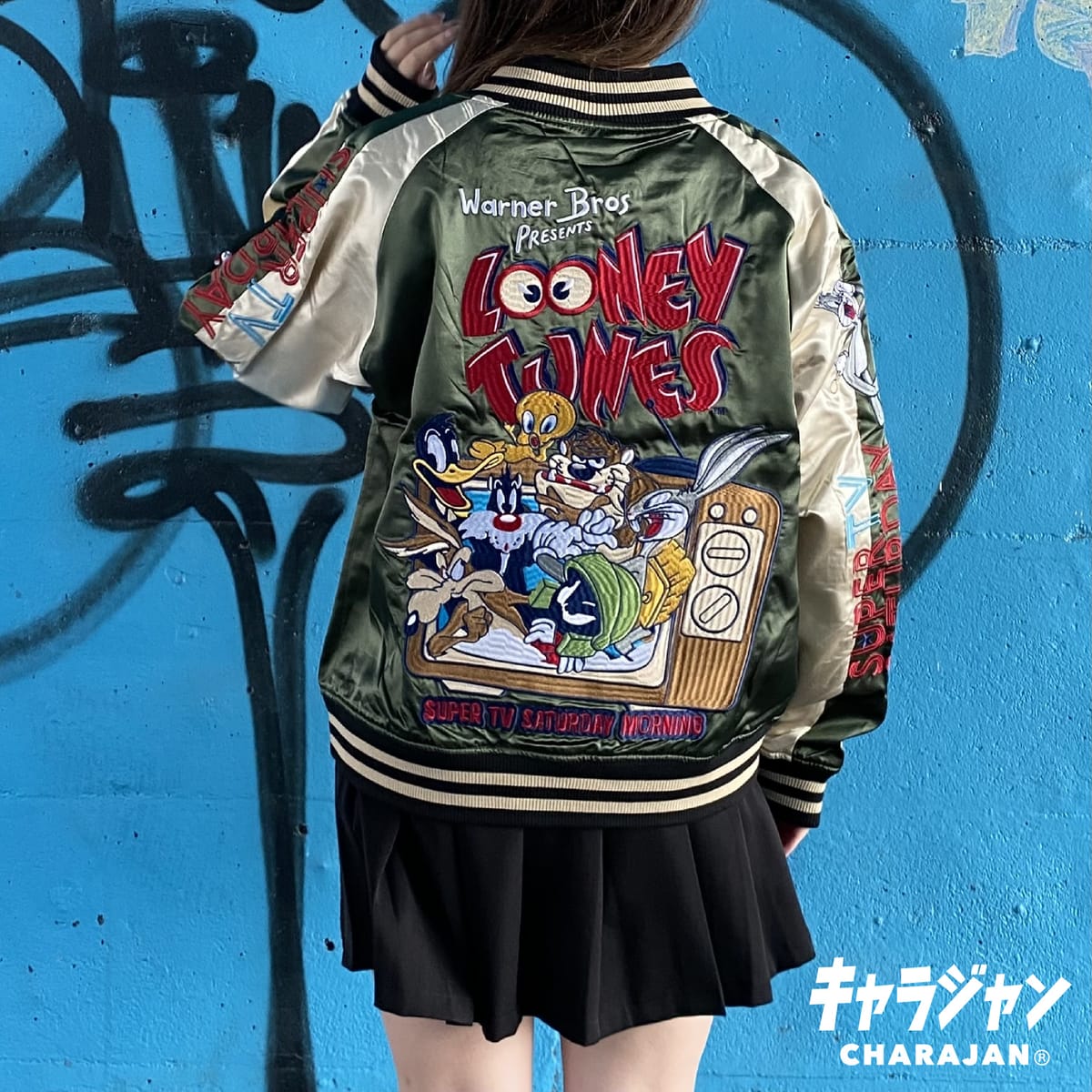 ルーニーチューンズのキャラクターたちがデザインされたスカジャンです。