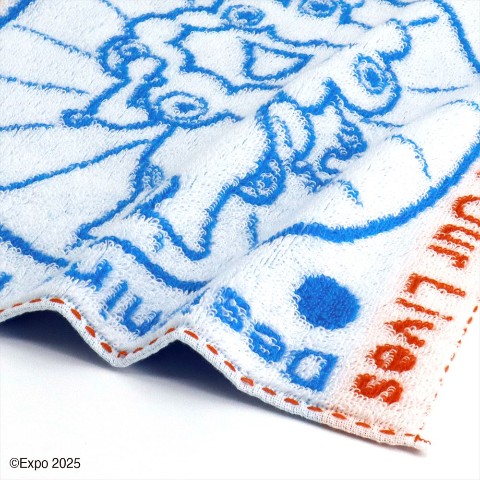 細胞と水がひとつになったことで生まれたミャクミャク。2028大阪・関西万博の公式キャラクター「ミャクミャク」のシンボリックなデザインのタオルハンカチ。