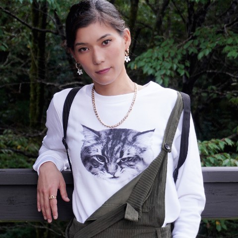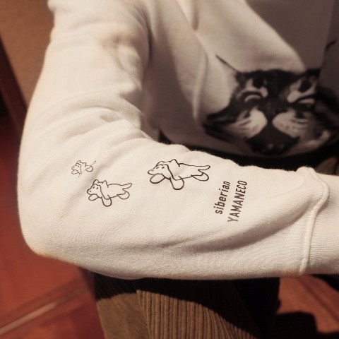 【ヤマネコ】クルーネックライトスウェット ホワイト/オラオラ(Mサイズ)