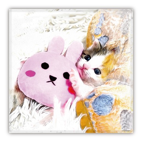 うさぎをぎゅっとしている子猫ががわいい