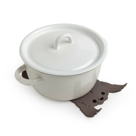 シャーっと威嚇しているネコは実は鍋敷き!ちょっと可哀想ですが、ねこちゃんの背中にお鍋を置くとぺっちゃんこになるおりこうさん。鍋パーティーに盛りあがりを添えてくれます。