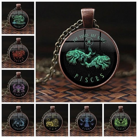 【#kawaiiiii!】『山羊座Capricorn』コズミック・ホラー (宇宙的恐怖)ペンダント (光が当たるとフォントが浮かびだす!星座ペンダント)