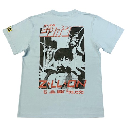 ハ-ドコアチョコレ-ト×赤い光弾 ジリオンは、LET"S IT ROCK!と共にフロントではJJ、チャンプ、アップル3人の横顔を。バックで神秘の銃「ジリオン」を構えた3人も勇ましい。懐かしさを超えて、今再び!滅多に商品化されないジリオンTシャツを手に入れる瞬間は今!