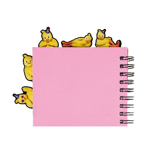 “ひよこあにき”のふせんです。ノートに貼るとさまざまなポーズをした“ひよこあにき”がノートの端から姿を現し、こちらを見てくるデザインです。
