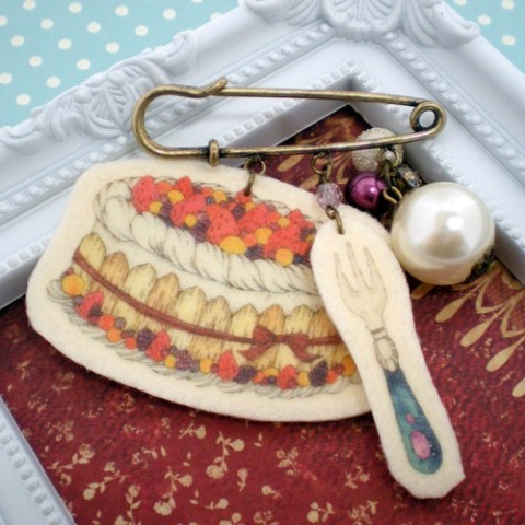 ケーキをモチーフにしたフェルトのブローチです。
