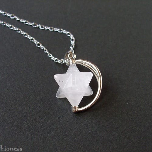 星型八面体のロングネックレスです。天然石(水晶)でできています。