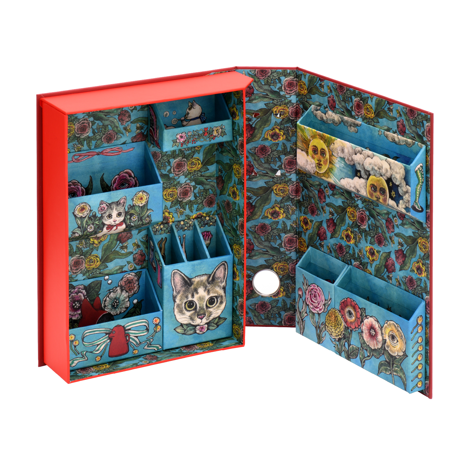ちいさな文具や道具などを整理するときに便利な収納ボックスです。 机上に立てたまま広げれば、どこに何があるかが一目瞭然。分類しながら「物をファイリング」できます。また、フタにマグネットが内蔵されているため、持ち運びや収納時に不意に開くことを防ぎます。