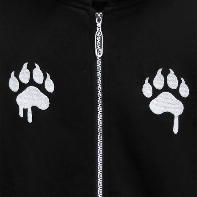 【LISTEN FLAVOR】 虎と炎のツノ付き 肉球ジップパーカー BLACK