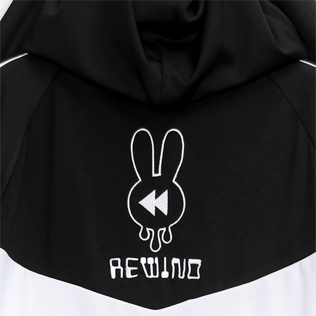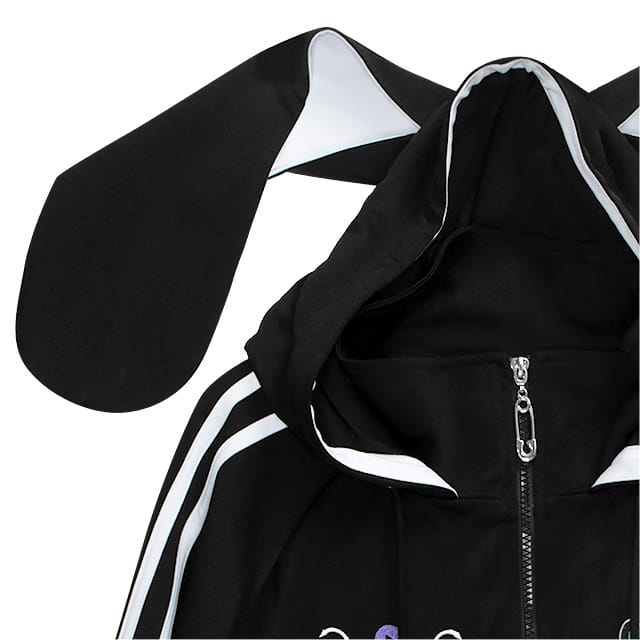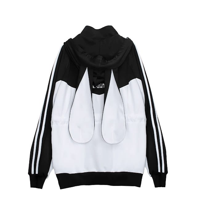 【LISTEN FLAVOR】 ミライから来た うさ耳ジャージパーカー WHITE×BLACK