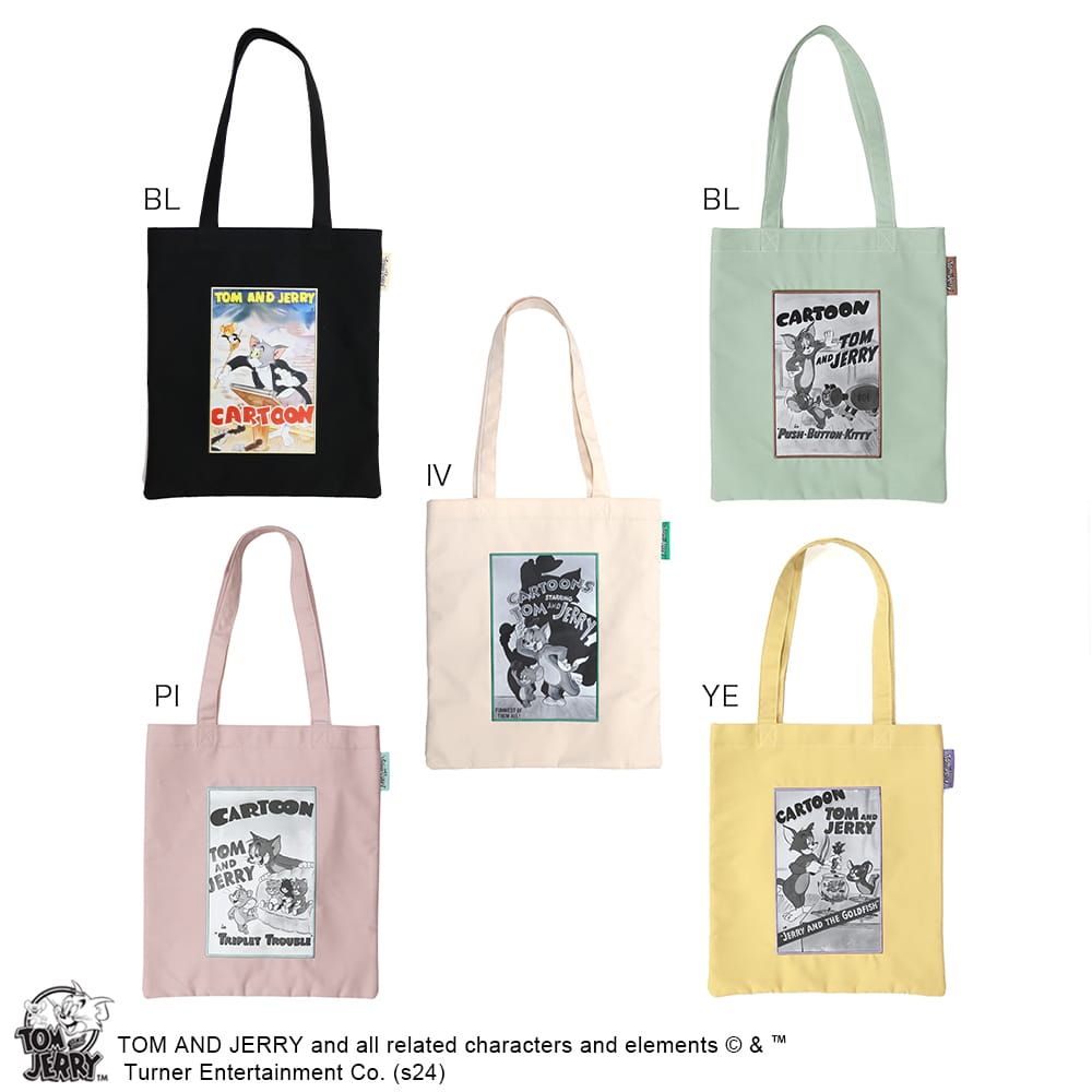 くすみ系カラーで持ちやすい、レトロなアートを使用したトートバッグ。