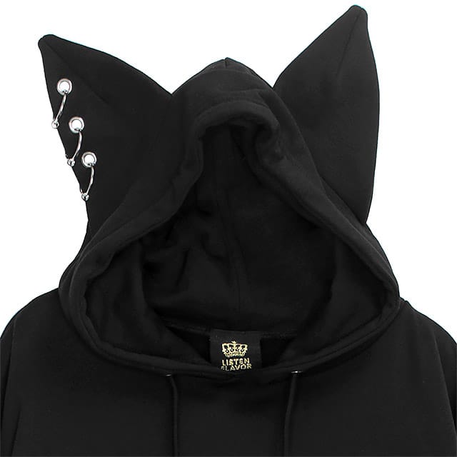 【LISTEN FLAVOR】やんのかステップ 猫耳パーカー BLACK