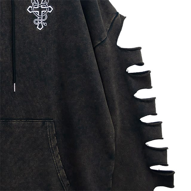 【LISTEN FLAVOR】誘惑の十字架 ダメージパーカー BLACK