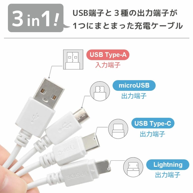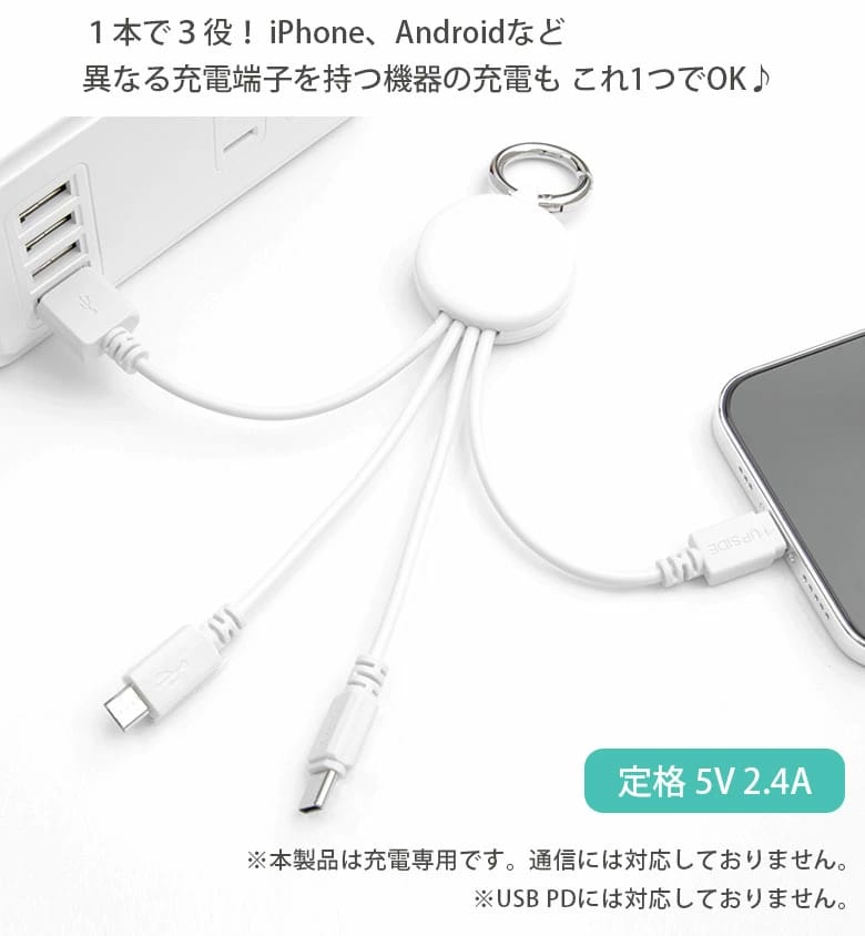 Lightning、Type-C、microUSB付いてる便利な充電ケーブル!