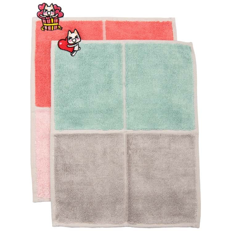 【どこでもいっしょ】刺繍ワッペンハンドタオル(ハート)