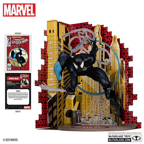 高い造形力とクオリティーに定評のあるマクファーレン・トイズが、『マーベル・コミック』を待望の立体化!名作カバーアートを立体化する1/6スケール「シーン・フィギュア」より、スパイダーマン(シンビオートスーツ)(トッド・マクファーレン/The Amazing Spider-Man Vol.1 #300)が登場だ!