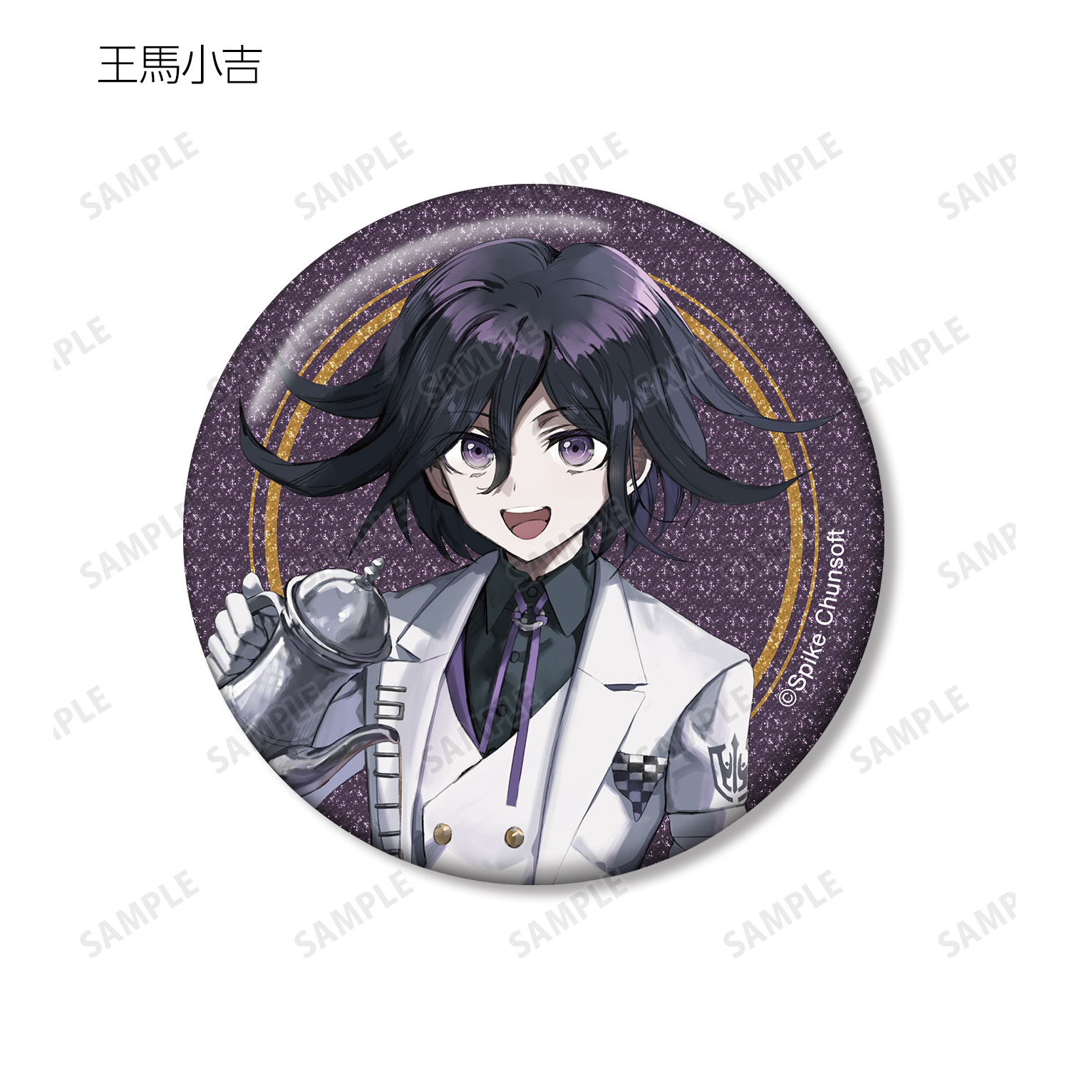 緜先生描き下ろしイラストの苗木誠、霧切響子、セレスティア・ルーデンベルク、江ノ島盾子、日向創、狛枝凪斗、七海千秋、カムクライズル、赤松楓、天海蘭太郎、王馬小吉、最原終一をグリッター加工を施した缶バッジに仕上げました。