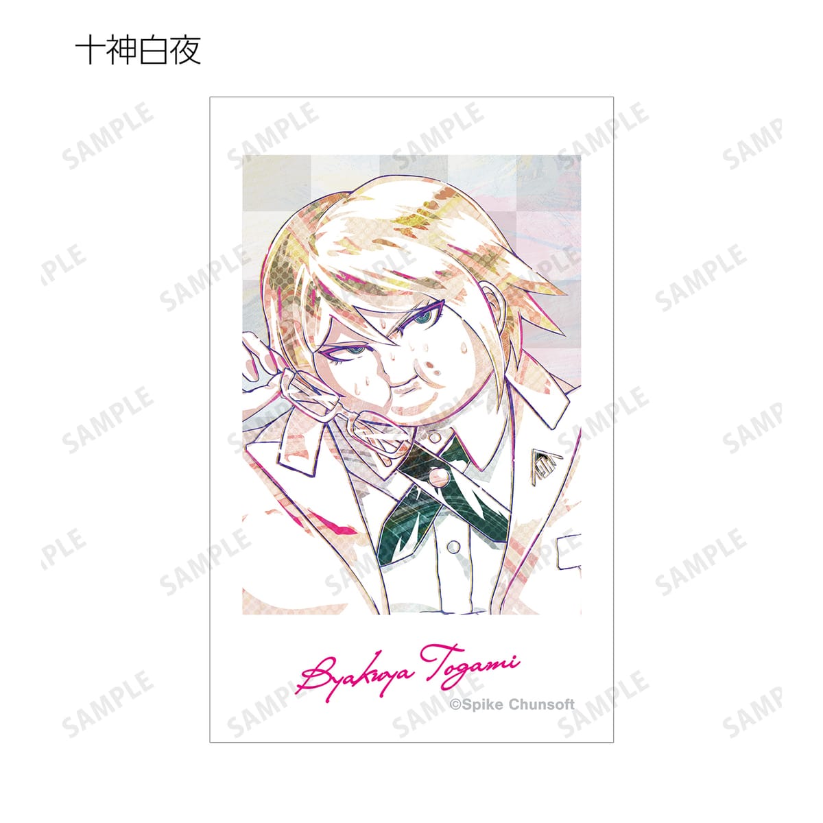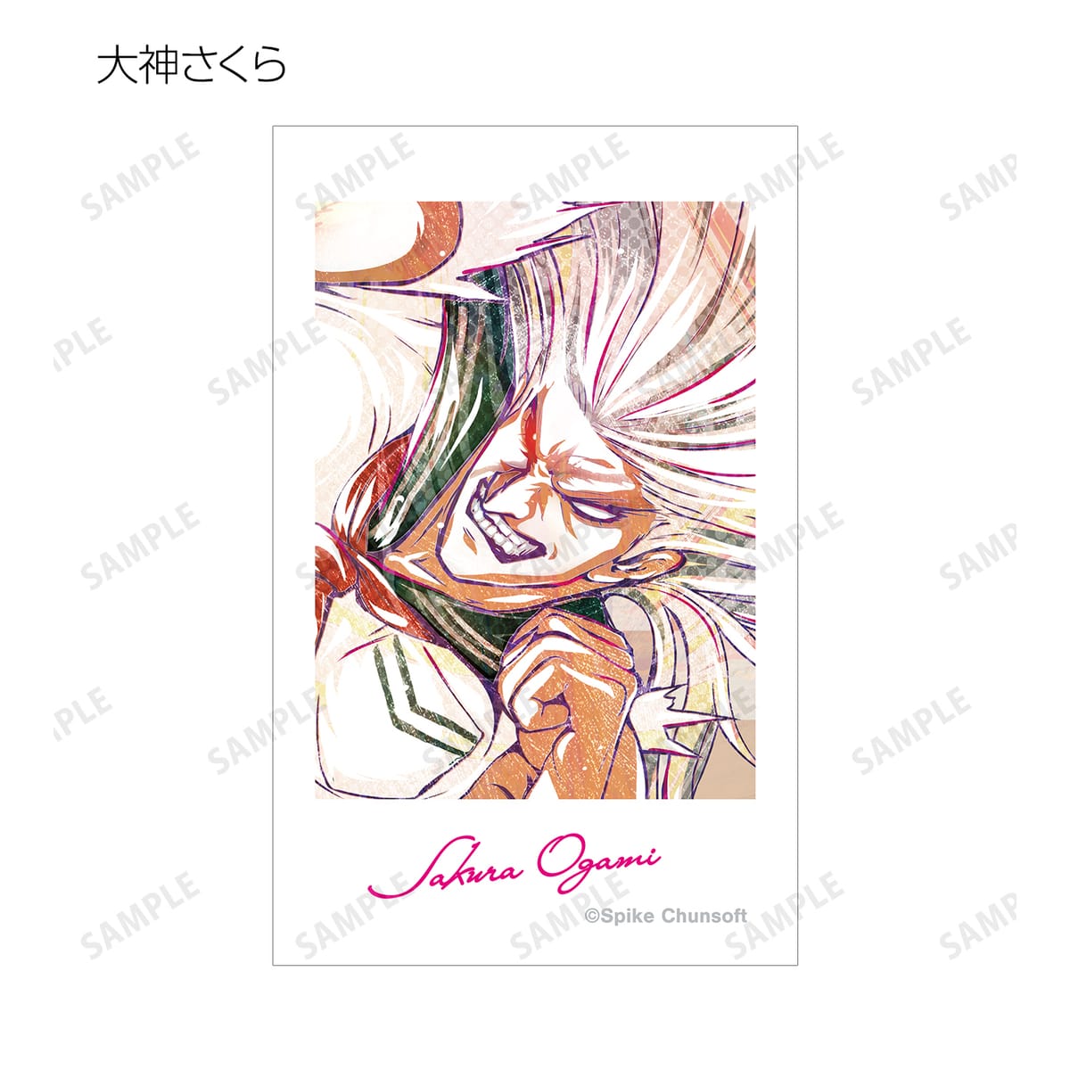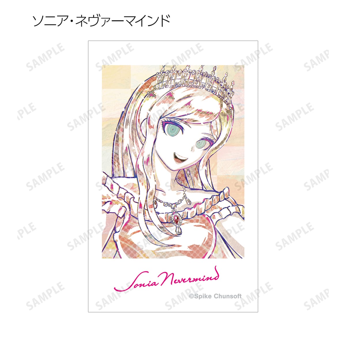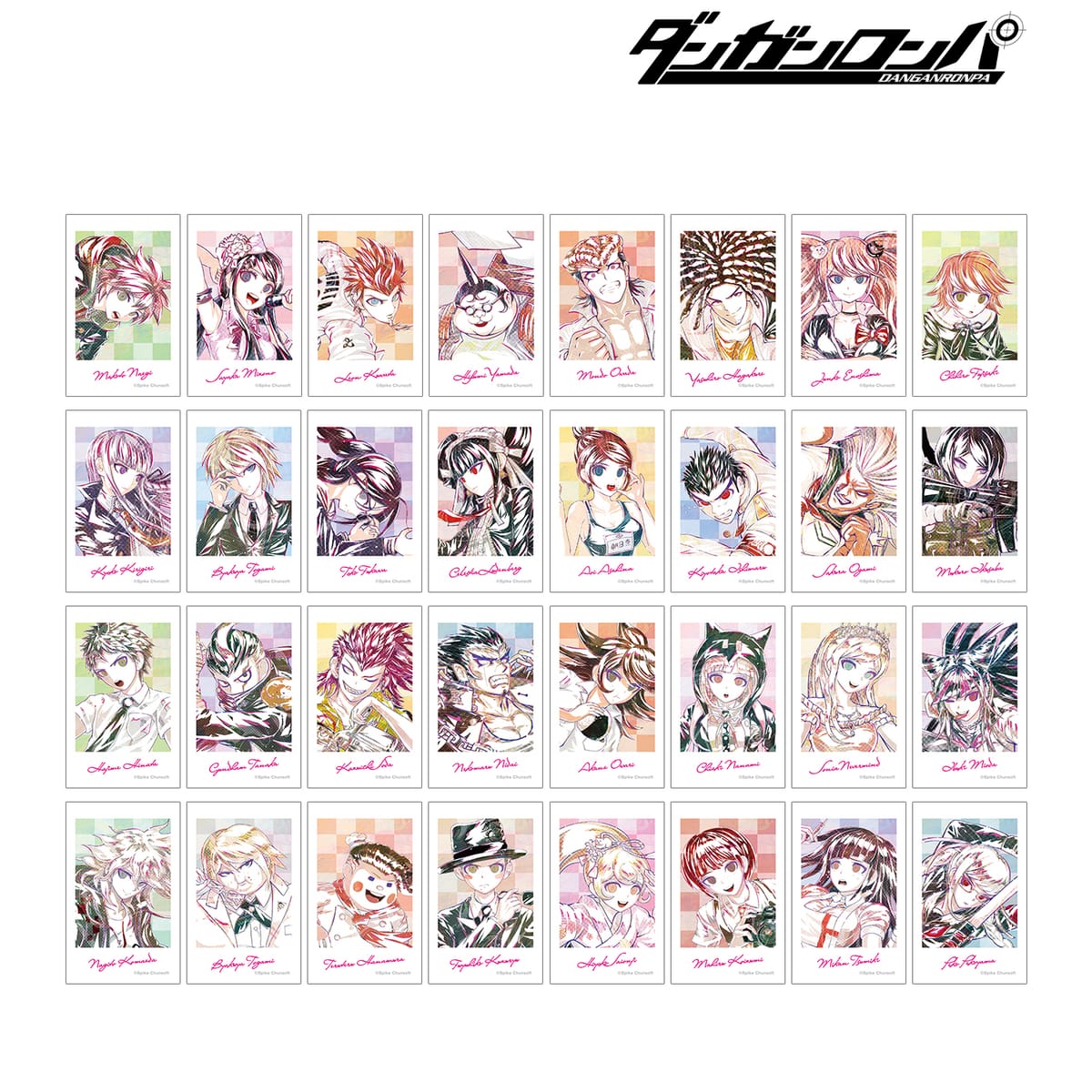 苗木誠、舞園さやか、桑田怜恩、山田一二三、大和田紋土、葉隠康比呂、江ノ島盾子、不二咲千尋、霧切響子、十神白夜、腐川冬子、セレスティア・ルーデンベルク、朝日奈葵、石丸清多夏、大神さくら、戦刃むくろ、日向創、田中眼蛇夢、左右田和一、弐大猫丸、終里赤音、七海千秋、ソニア・ネヴァーマインド、澪田唯吹、狛枝凪斗、十神白夜、花村輝々、九頭竜冬彦、西園寺日寄子、小泉真昼、罪木蜜柑、辺古山ペコを新たなタッチで魅力的に表現し、インスタントカメラ風のイラストカード2枚セットに仕上げました。