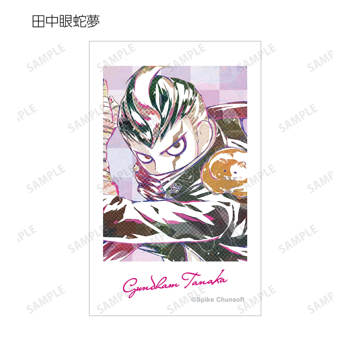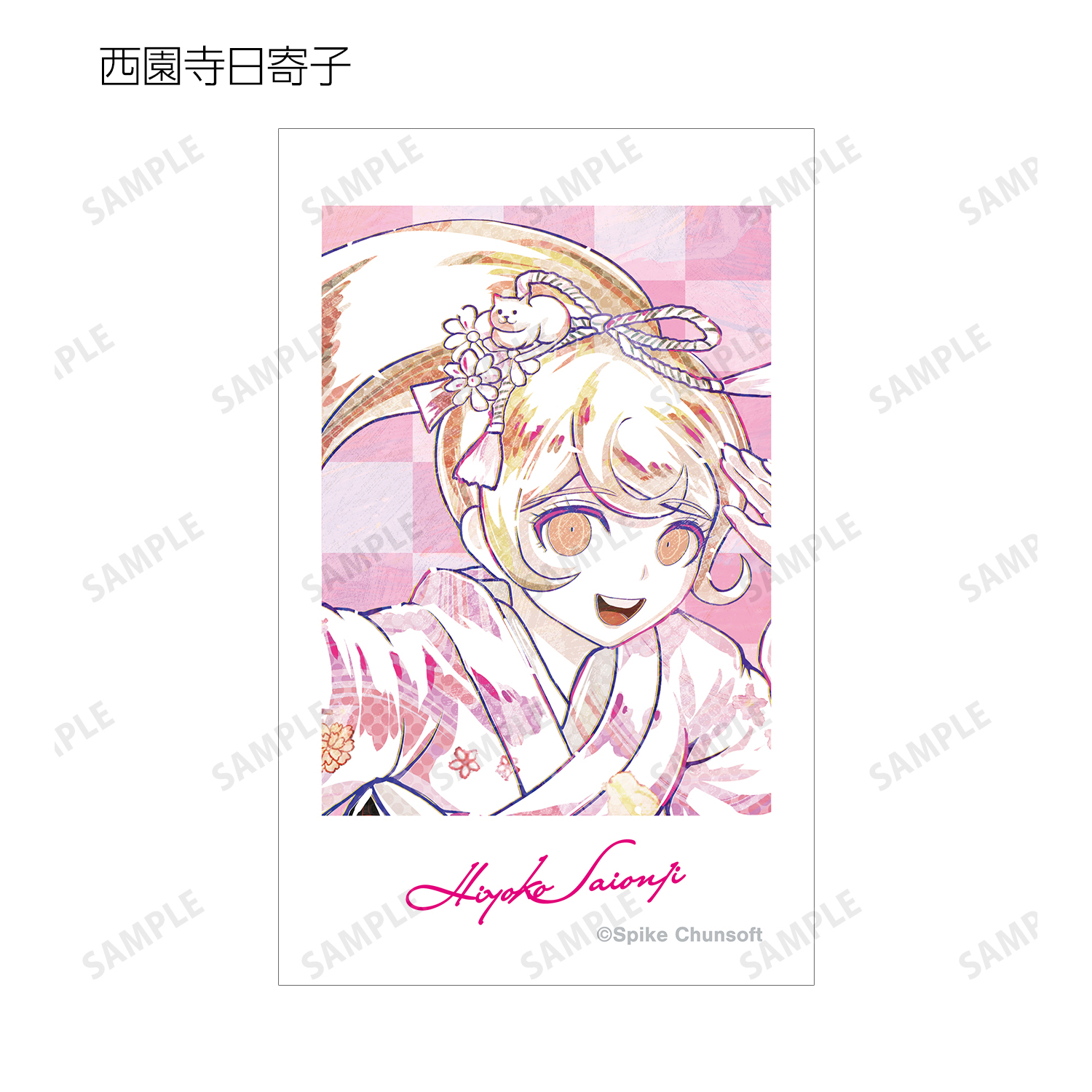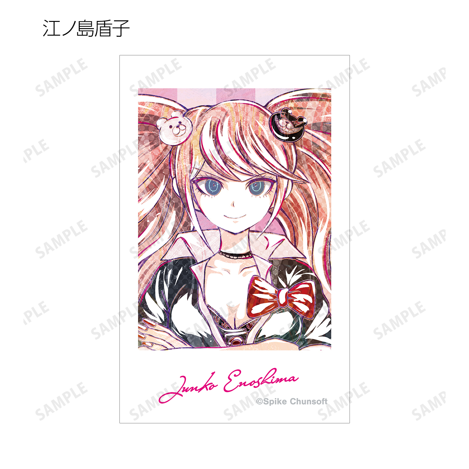 苗木誠、舞園さやか、桑田怜恩、山田一二三、大和田紋土、葉隠康比呂、江ノ島盾子、不二咲千尋、霧切響子、十神白夜、腐川冬子、セレスティア・ルーデンベルク、朝日奈葵、石丸清多夏、大神さくら、戦刃むくろ、日向創、田中眼蛇夢、左右田和一、弐大猫丸、終里赤音、七海千秋、ソニア・ネヴァーマインド、澪田唯吹、狛枝凪斗、十神白夜、花村輝々、九頭竜冬彦、西園寺日寄子、小泉真昼、罪木蜜柑、辺古山ペコを新たなタッチで魅力的に表現し、インスタントカメラ風のイラストカード2枚セットに仕上げました。