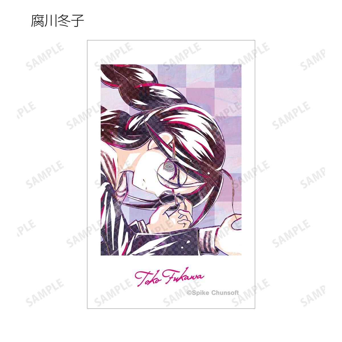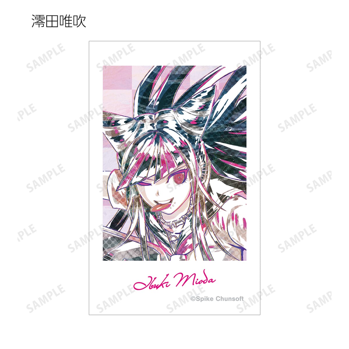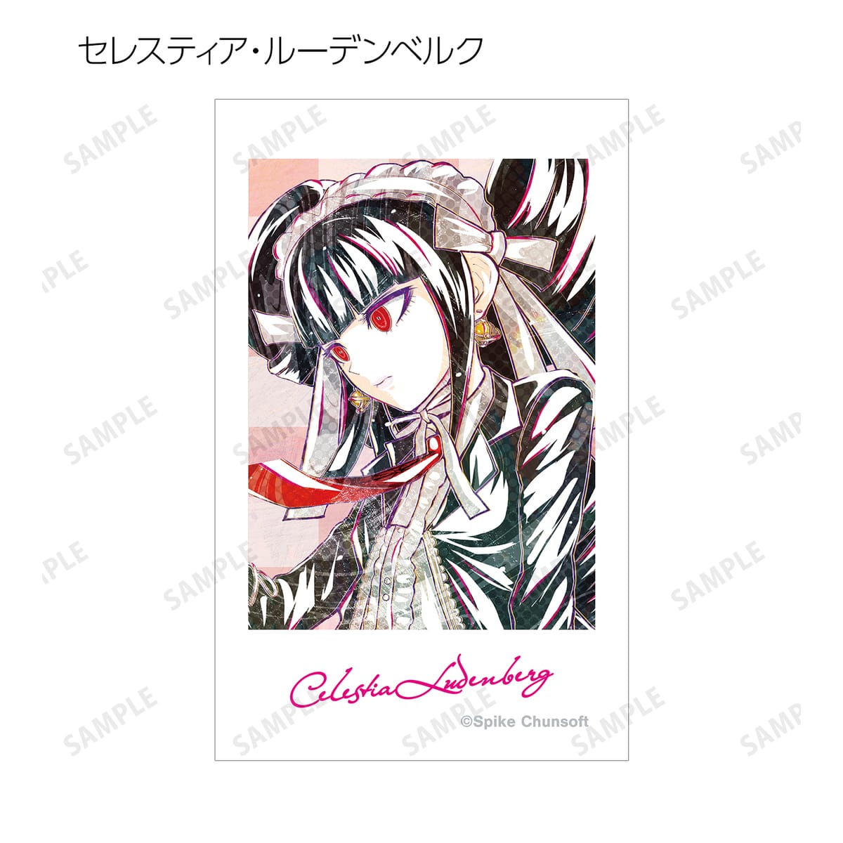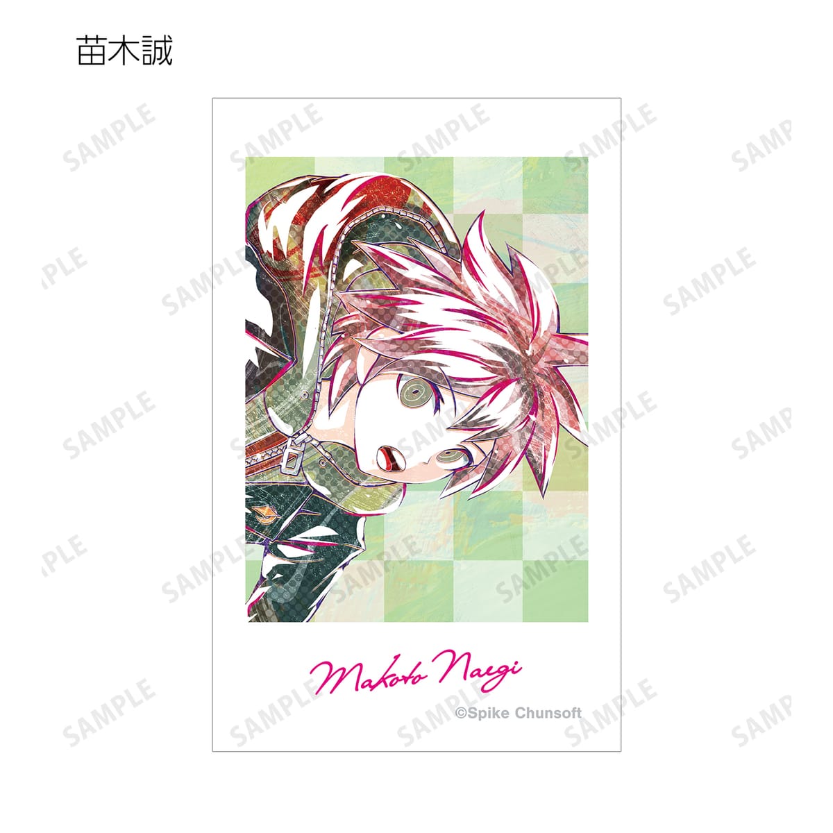苗木誠、舞園さやか、桑田怜恩、山田一二三、大和田紋土、葉隠康比呂、江ノ島盾子、不二咲千尋、霧切響子、十神白夜、腐川冬子、セレスティア・ルーデンベルク、朝日奈葵、石丸清多夏、大神さくら、戦刃むくろ、日向創、田中眼蛇夢、左右田和一、弐大猫丸、終里赤音、七海千秋、ソニア・ネヴァーマインド、澪田唯吹、狛枝凪斗、十神白夜、花村輝々、九頭竜冬彦、西園寺日寄子、小泉真昼、罪木蜜柑、辺古山ペコを新たなタッチで魅力的に表現し、インスタントカメラ風のイラストカード2枚セットに仕上げました。