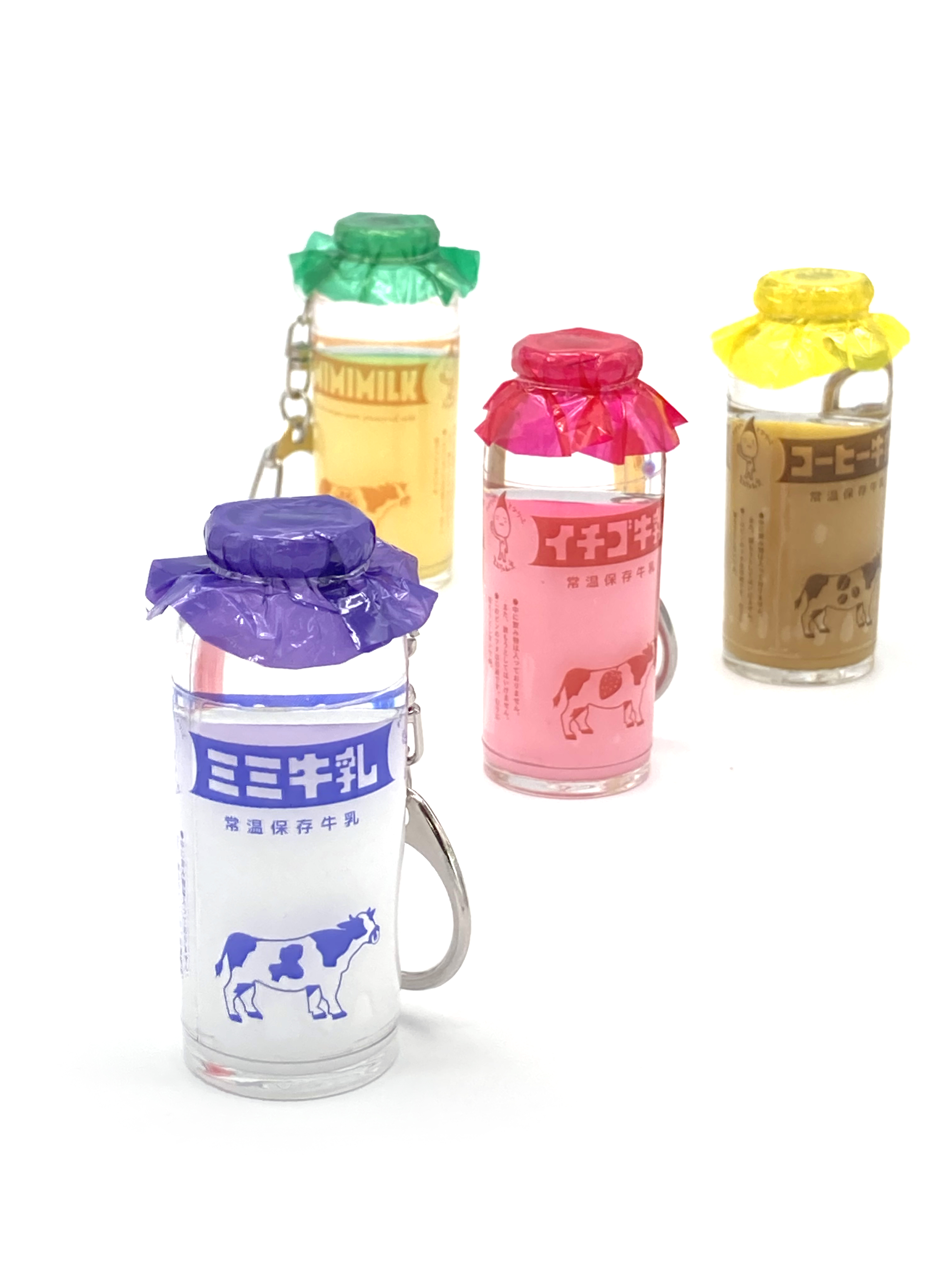 まるで牛乳が入っているような、ゆらゆら揺れるリアルな牛乳瓶のキーホルダー