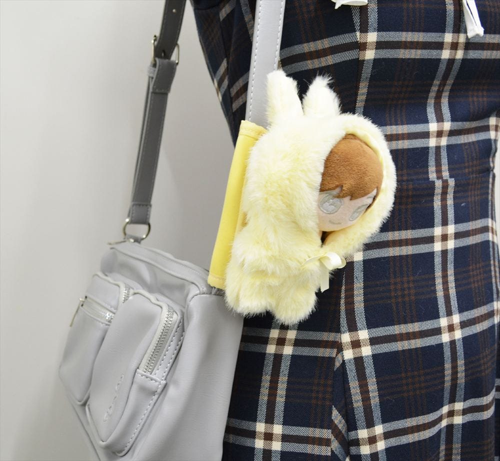 ・バッグのハンドルに付けて一緒にお出かけができるぬい服付きのハンドルカバー。