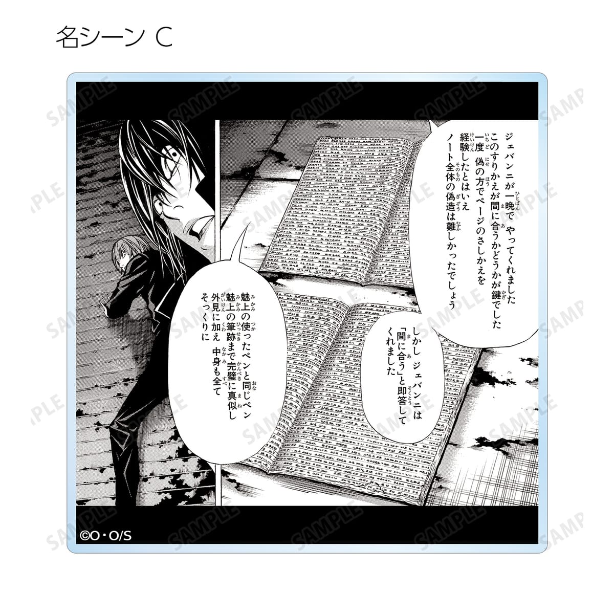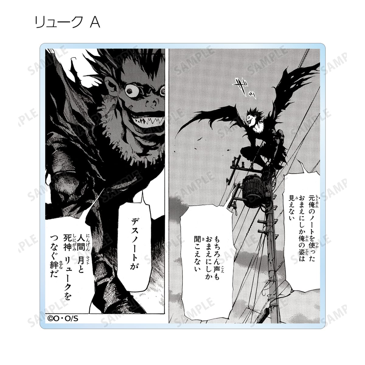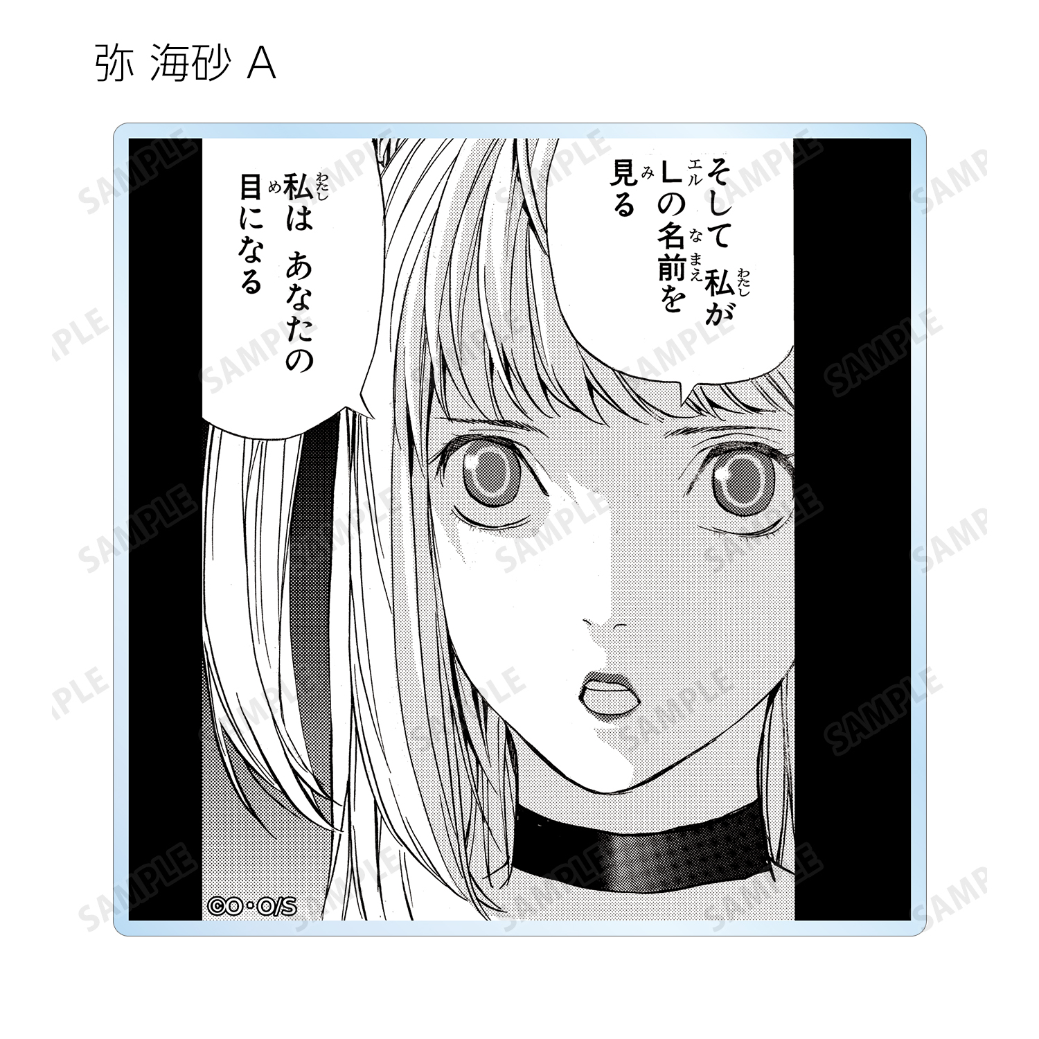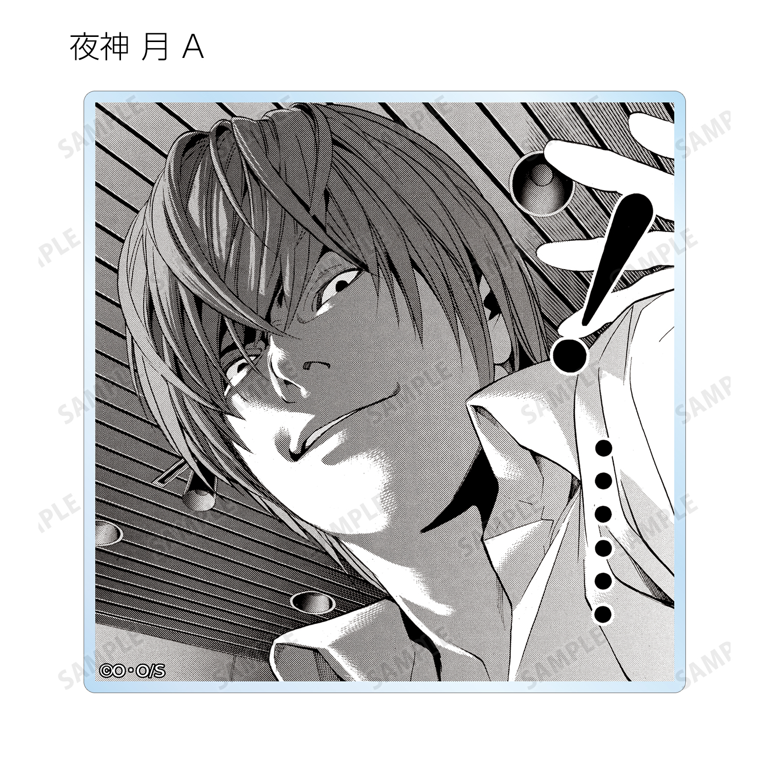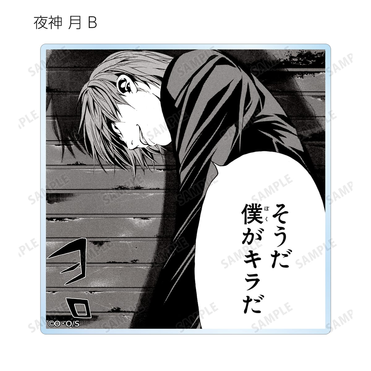 夜神 月、リューク、L、弥 海砂、レム、ニア、メロの印象的なシーンと作中の名シーンの原作コマをアクリルコースターに仕上げました。