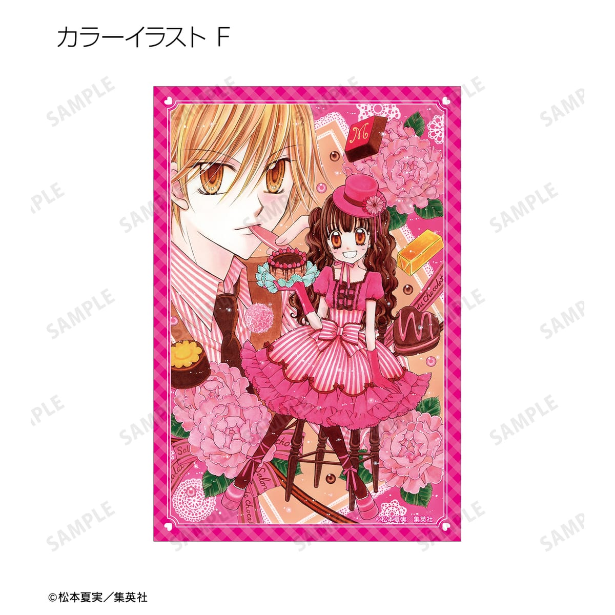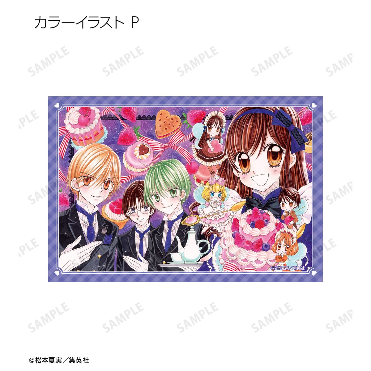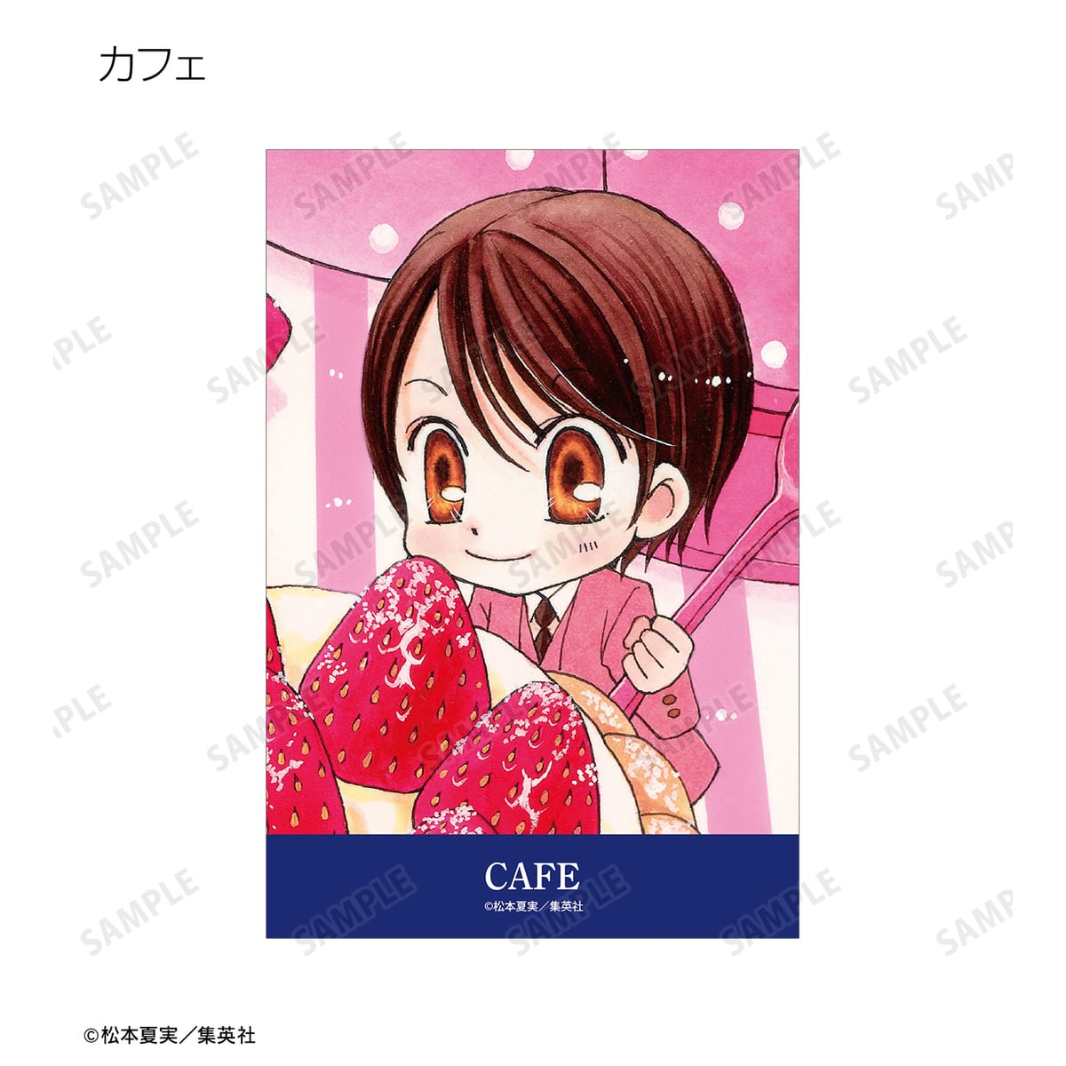 天野いちご、樫野真、安堂千乃介、花房五月、バニラ、ショコラ、キャラメル、カフェの原作イラスト、原作コマイラストをポストカードに仕上げました。