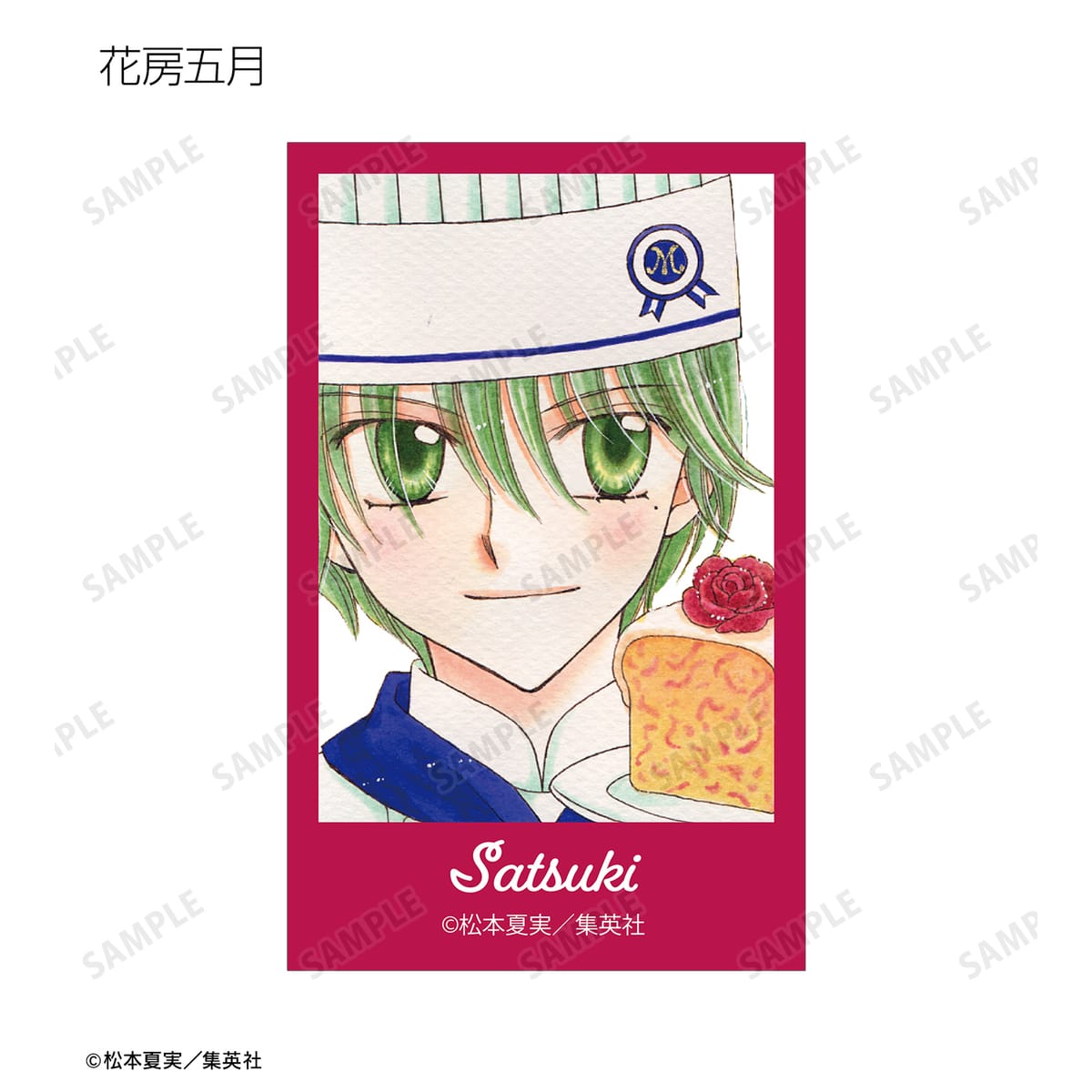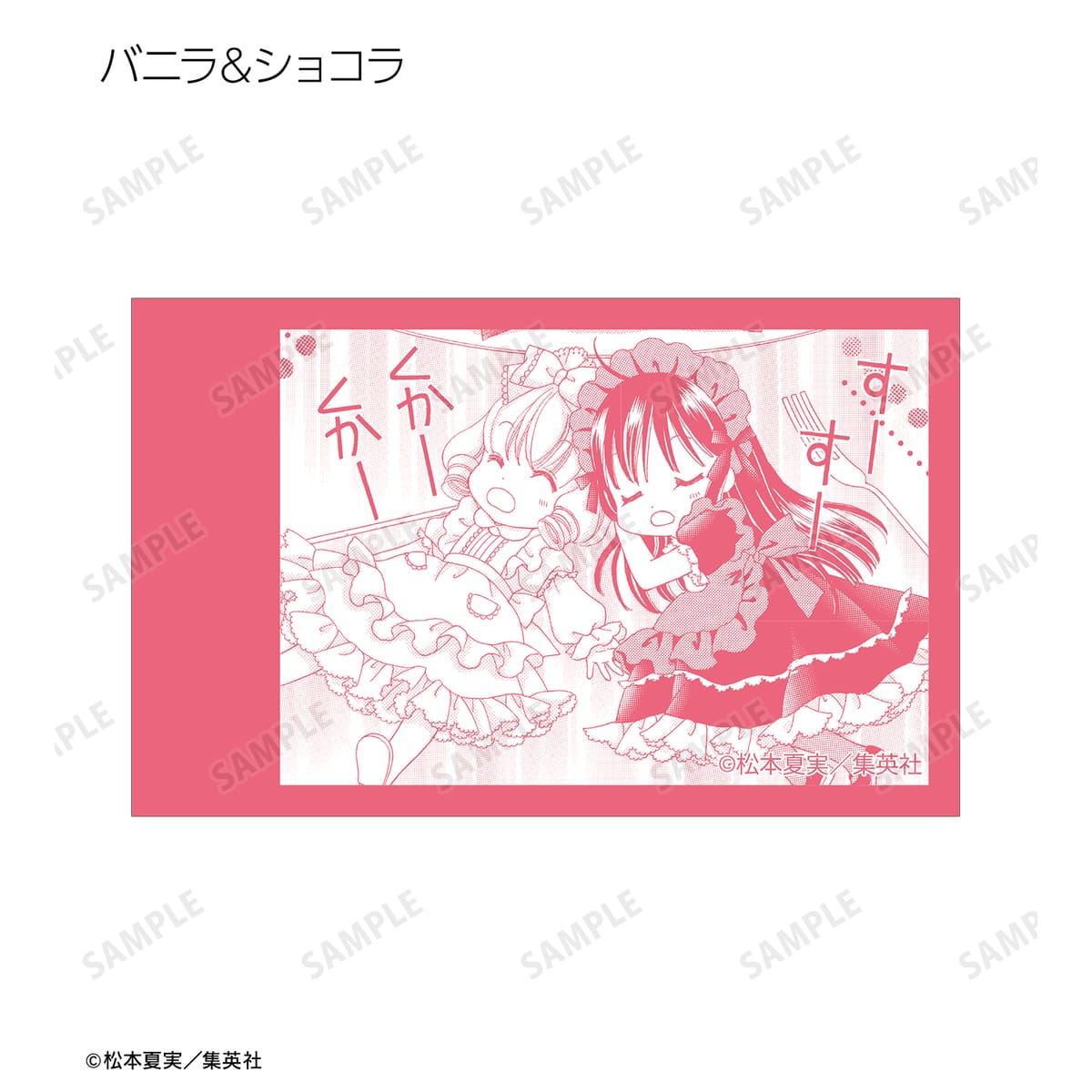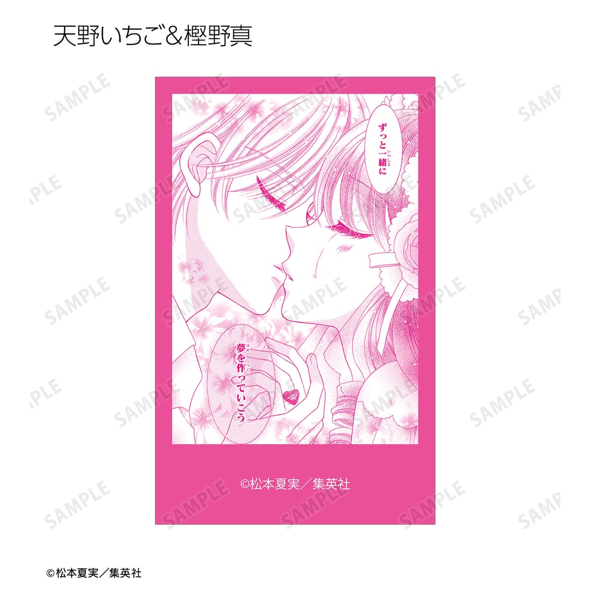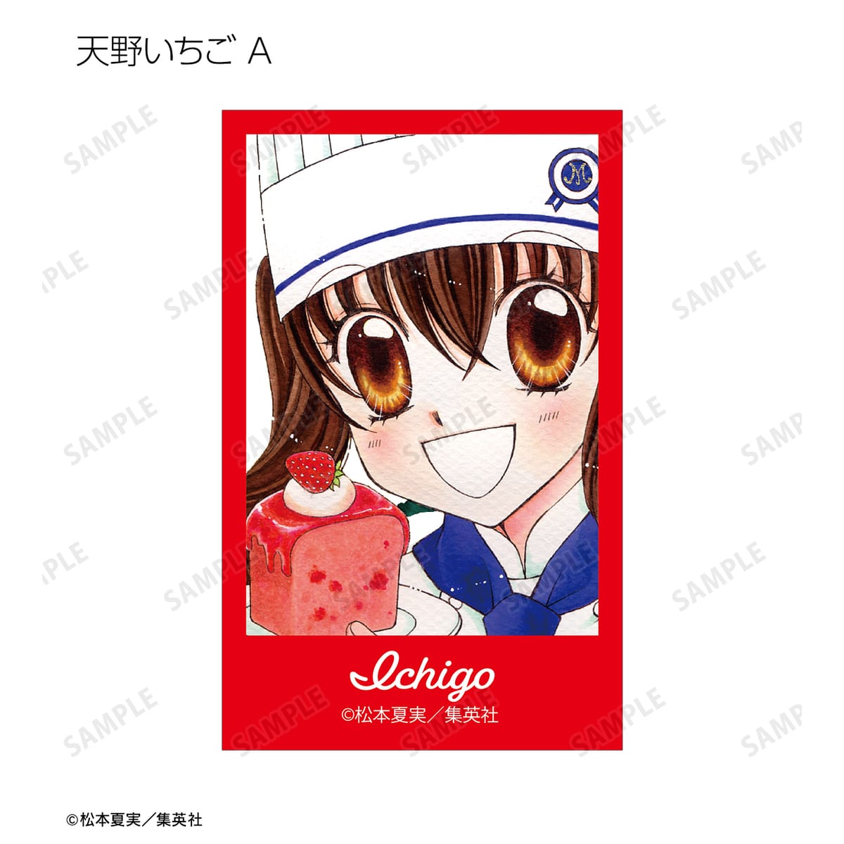 天野いちご、樫野真、安堂千乃介、花房五月、バニラ、ショコラ、キャラメル、カフェの原作イラスト、原作コマイラストをインスタントカメラ風のイラストカードに仕上げました。
